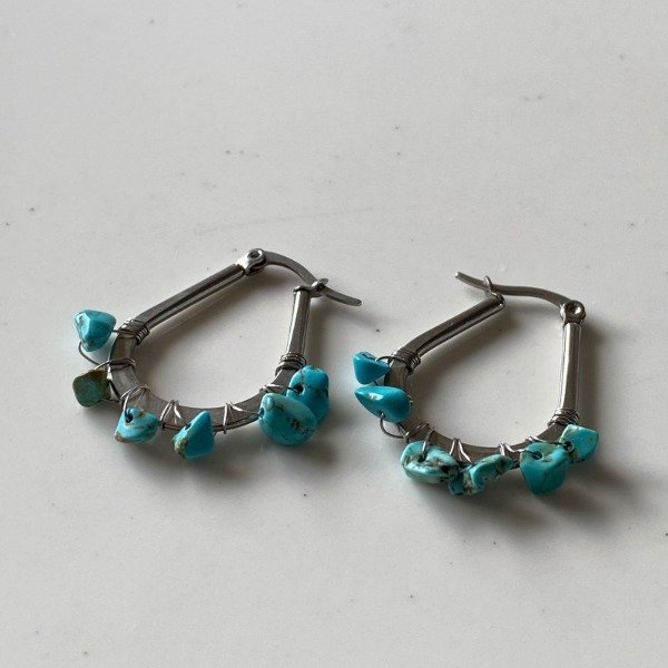 Argollas fabricadas artesanalmente con acero quirúrgico y cristales naturales pulidos de Turquesas