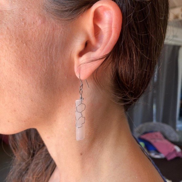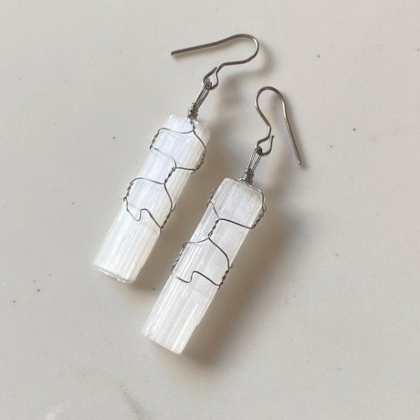 Pendientes fabricados artesanalmente con acero quirúrgico y Selenitas en bruto