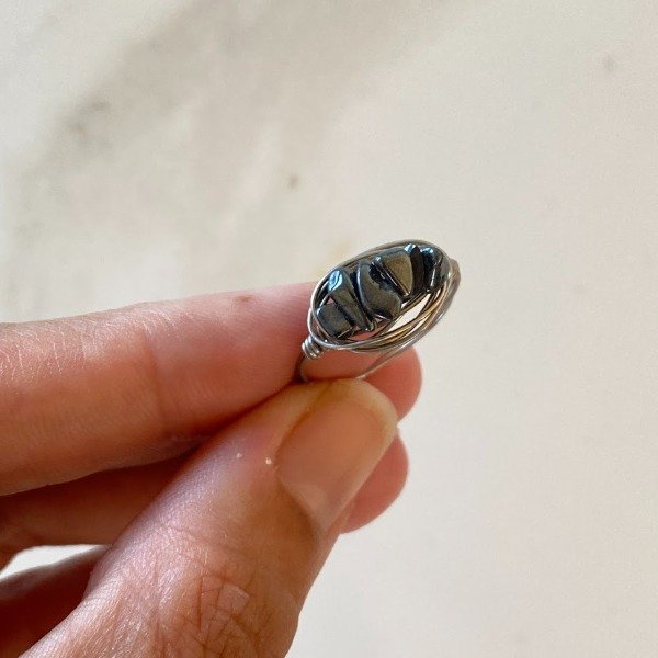 Anillo fabricado artesanalmente con acero quirúrgico y cristales naturales pulidos de Hematite.