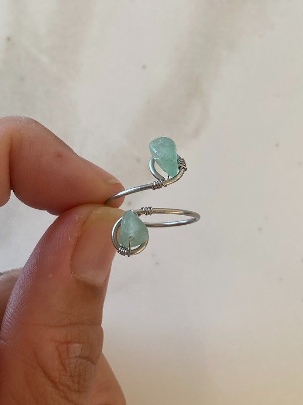 Anillo fabricado artesanalmente con acero quirúrgico y escallas de Cuarzo verde.