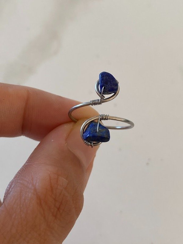 Anillo fabricado artesanalmente con acero quirúrgico y escallas de Lapislázuli.