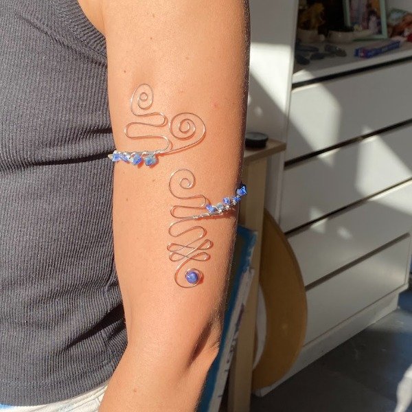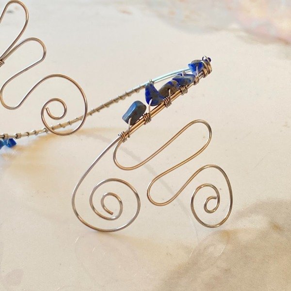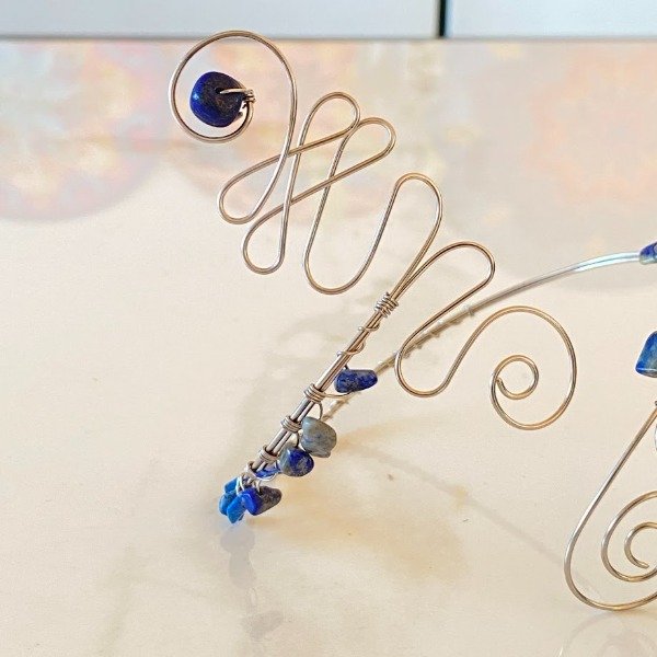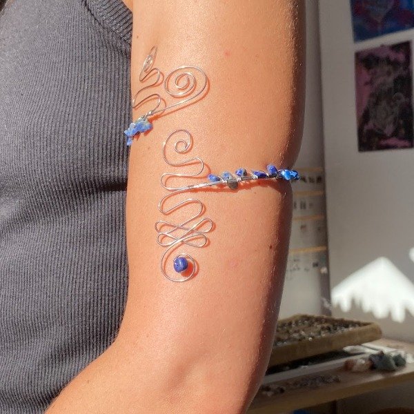 Brazalete fabricado artesanalmente con acero quirúrgico y cristales naturales pulidos de Lapislázuli.