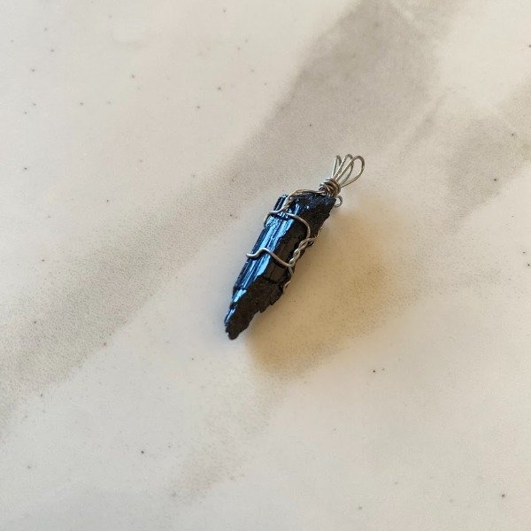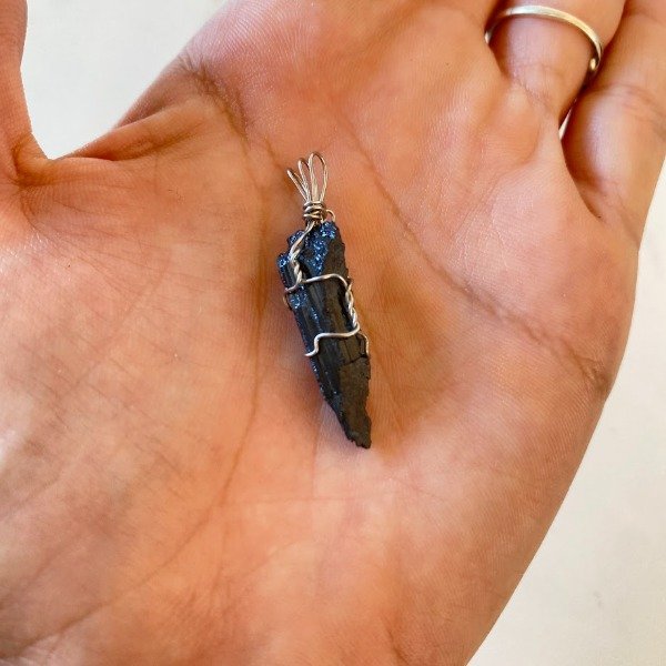 Dije engarzado artesanalmente con acero quirúrgico y Turmalina en bruto.