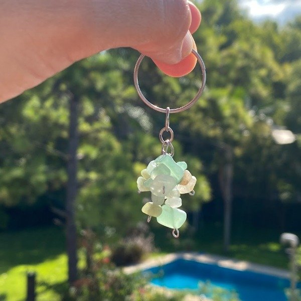 Llavero fabricado artesanalmente con escallas de Cuarzo verde